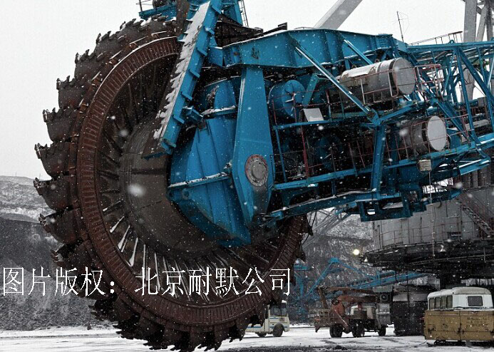 據悉,該“大型怪物”名為斗輪挖掘機,擁有奇妙的裝置和精巧的設計,在它的前部安裝了巨大的回轉輪;剞D輪中的鋸的直徑達12米。整個機器的機身重量達45000噸,有4層樓那么高。機器的最外緣是一系列的勺狀或桶狀裝置,在此通過傳送帶完成煤炭的裝卸工作?梢話咔迩胺降囊磺姓系K,即使是高高的礦山也不在話下。